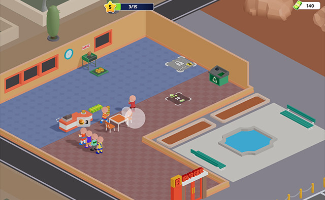 Burger Empire ist ein Restaurantmanagementspiel, in dem du Burger und Kaffee zubereitest und gleichzeitig dein Lokal ausbaust. Du musst eine vielfältige Kundschaft schnell bedienen, indem du schmackhafte Gerichte kochst und deinen Raum effizient organisierst. Die Herausforderung besteht darin, die Geschwindigkeit des Services mit der Qualität der Zubereitungen auszubalancieren, um deine Gäste zufriedenzustellen und deine Einnahmen zu maximieren. Jede erfolgreiche Bestellung bringt dir Münzen ein, die du in dein Café reinvestieren kannst. Nach und nach schaltest du neue Tische, bequeme Sitzbänke und farbenfrohe Essbereiche frei, um deinen Raum zu vergrößern. Das Personalisierungssystem ermöglicht es dir, die Dekoration zu wählen, die Möbelanordnung zu gestalten und spezielle Menüartikel hinzuzufügen. Verschiedene Kundentypen besuchen dein Lokal, jeder mit eigenen Erwartungen und unterschiedlicher Geduld. Du musst Bestellungen vorhersehen, Garzeiten managen und selbst in Stoßzeiten einen reibungslosen Service gewährleisten. Viel Spaß!