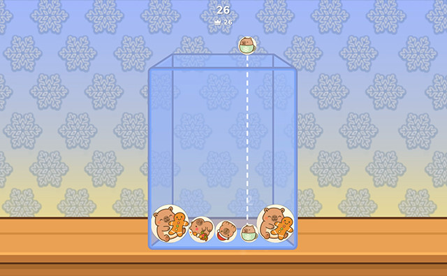 Capybara Xmas Merge ist ein entspanntes und warmes Fusionsspiel mit niedlichen Weihnachtscapybaras. Du kombinierst diese festlichen Kreaturen, indem du sie in eine Box fallen lässt, wo sie rollen und gegeneinander stoßen, um sich in immer größere und lustigere Figuren zu verwandeln. Das Ziel ist es, riesige Capybaras zu erschaffen, Punkte zu sammeln und die gemütliche Winteratmosphäre zu genießen. Berühre den Bildschirm, um ein Capybara in das Glas fallen zu lassen. Wenn sich zwei identische Capybaras berühren, verschmelzen sie automatisch zu einem größeren. Du musst deine Platzierungen sorgfältig planen, da der Platz schnell knapp wird und du vermeiden musst, den Behälter zu überfüllen. Je mehr große Fusionen du erschaffst, desto höher steigt deine Punktzahl. Die Herausforderung besteht darin, das größte Capybara zu bauen, bevor dir der Platz ausgeht. Dieses Denk- und Strategiespiel bietet ein entspannendes und festliches Erlebnis, ideal für Pausen während der Feiertage. Viel Spaß!