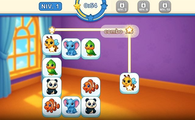 Dream Pet Hotel lädt dich ein, Nachdenken und Kreativität in einem rührenden Universum zu verbinden, in dem dich jede verbundene Kachel deinem Ziel näherbringt. Dieses originelle Verbindungsspiel kombiniert geschickt die Mechaniken von zeitlich begrenzten Denkspielen mit der dekorativen Verwaltung eines Hotels, das ausschließlich unsere vierbeinigen Freunde willkommen heißt. Du musst Katzen, Welpen, Pandas und viele andere niedliche Kreaturen verbinden, indem du Wege zwischen identischen Kacheln ziehst und dabei die unerbittlich tickende Uhr im Auge behältst. Über die geistigen Herausforderungen hinaus, die jedes Level darstellt, wirst du das unvergleichliche Vergnügen entdecken, dein Traumhotel einzurichten und zu personalisieren. Jeder Sieg erlaubt es dir, neue Räume freizuschalten, warme Möbel und einzigartige Dekorationen zu erwerben, um die perfekte Atmosphäre zu schaffen. Alles kann vom Boden bis zur Decke angepasst werden und du kannst überall im Hotel Dekorationen hinzufügen. Deine Mühen werden durch die Ankunft entzückender Gäste belohnt, die in den von dir sorgfältig vorbereiteten Zimmern wohnen werden. Viel Spaß!