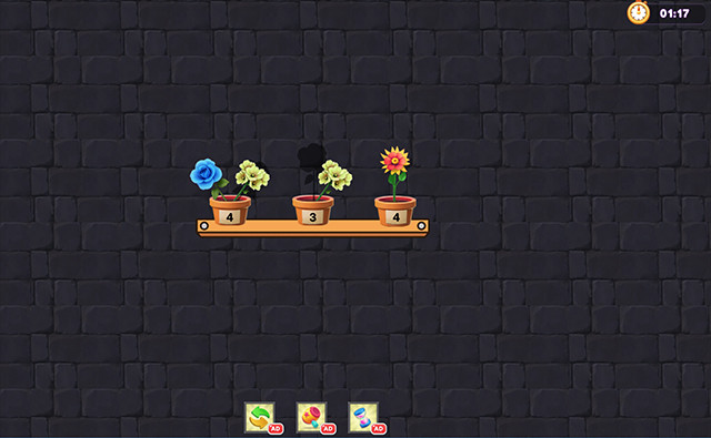 Flower Sort lädt dich ein, bunte Blumen in Töpfe zu sortieren und wunderschöne Blumengestecke zu gestalten. Deine Aufgabe besteht darin, drei identische Blumen in denselben Topf zu legen, damit ein üppiger und harmonischer Busch erblüht. Jeder Topf zeigt, wie viele Schichten Blumen er enthält, und du kannst die Schatten der versteckten Blumen hinter der ersten Schicht sehen - räume den Platz frei, um zu entdecken, was sich darunter verbirgt! Die helle und entspannende Atmosphäre des Spiels bietet dir einen Moment der Ruhe, um dem Alltag zu entfliehen. Im Verlauf der Level entdeckst du neue Blumenkombinationen in leuchtenden Farben und bezaubernde visuelle Effekte, die jede Partie einzigartig machen. Strategie ist entscheidend: Plane deine Züge sorgfältig und erschaffe befriedigende Fusionsketten, um deine Ergebnisse zu optimieren. Aber sei vorsichtig, die Zeit läuft! Du musst die Sortierung abschließen, bevor der Timer abläuft, um das Level zu bestehen und dich neuen, noch aufregenderen Blumenherausforderungen zu stellen. Viel Spaß!