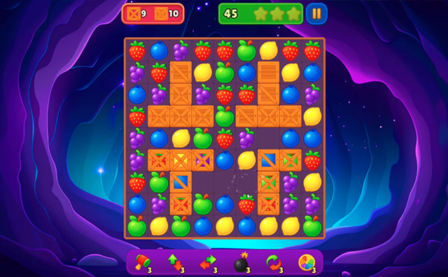 Fruit Burst - Match 3 lädt dich ein, saftige Früchte in einem farbenfrohen Rätsel zum Platzen zu bringen, bei dem jeder Zug zählt. Dieses Denkspiel kombiniert Strategie und Schnelligkeit, um deine Fähigkeiten über Hunderte von fortschreitenden Leveln hinweg herauszufordern. Dein Ziel ist es, drei oder mehr Früchte derselben Farbe auszurichten, um sie vom Spielfeld zu entfernen, während du verschiedene Hindernisse überwindest und versteckte Gegenstände sammelst. Während du voranschreitest, entdeckst du innovative Mechaniken: Eis zerbrechen, Blöcke aus Kisten befreien, Schlüssel nach unten führen und zwischen Wänden und leeren Feldern navigieren, die jede Herausforderung komplexer machen. Spezielle Kombinationen erzeugen explosive Boni, die deine taktische Herangehensweise verändern, während begrenzte Züge das Erlebnis intensivieren. Jede erfolgreiche Kombo löst eine äußerst befriedigende Kettenreaktion aus und bringt dich der vollständigen Beherrschung dieser fruchtigen Welt näher. Viel Spaß!
