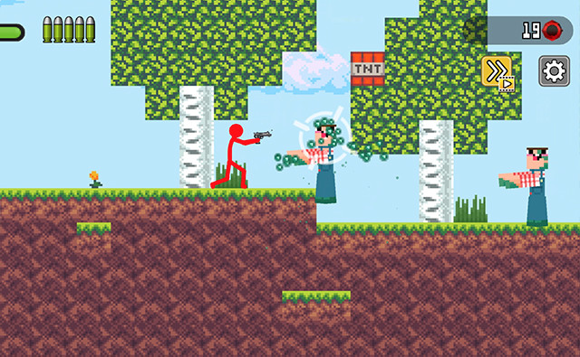 Du spielst als Stickman, ein roter Held, der in die würfelförmige Minecraft-Welt geworfen wird, die sich in einen von einem Zombievirus verseuchten Albtraum verwandelt hat. Deine Aufgabe ist es, alle infizierten Kreaturen zu vernichten, Eve zu retten, die gefangen wurde, und den Ausgang aus dieser feindlichen Welt zu finden. Dieses Plattform- und Actionspiel bietet dir ein spannendes Abenteuer, in dem jede Ebene voller tödlicher Gefahren steckt. Du hast ein breites Arsenal an Schusswaffen, um Horden von Zombies zu bekämpfen - infizierte Tiere, in Monster verwandelte Bewohner und furchterregende Bosse, die die Schlüsselbereiche bewachen. Mit deinem Jetpack kannst du schwindelerregende Sprünge ausführen, um unzugängliche Bereiche zu erreichen und tödliche Fallen zu vermeiden. Sammle die Münzen, die in jeder Ebene verstreut sind, um Stickmans Fähigkeiten zu verbessern - erhöhe seine Feuerkraft, Geschwindigkeit und Widerstandskraft. Je weiter du kommst, desto mächtiger werden deine Waffen und desto härter deine Gegner. Sobald Eve befreit ist, wird sie dir in kritischen Momenten helfen. Viel Spaß!