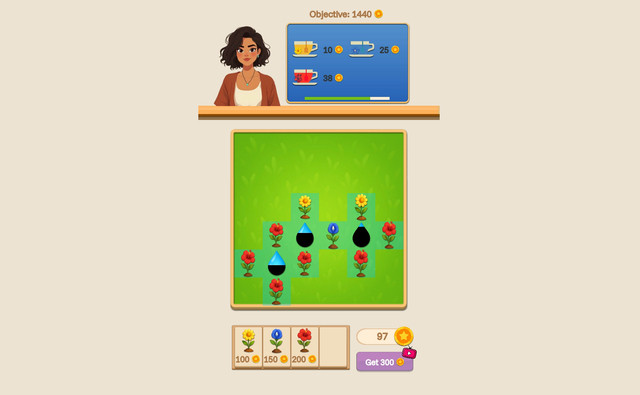 Tea Garden - Bloom & Brew lädt dich ein, einen Zufluchtsort der Ruhe zu schaffen, wo beruhigende Blumen und Teetassen deinen ruhigen Alltag rhythmisieren. Dort findest du einen inneren Rückzugsort, gedacht für die Momente, in denen du atmen und dich sanft neu zentrieren musst. Schon in den ersten Minuten in diesem Teegarten scheint der Druck des Alltags zu verschwinden, ersetzt durch das zarte Leuchten der Blüten und das beruhigende Murmeln des fließenden Wassers. Jede Pflanze, die du setzt, wird zu einem kleinen Versprechen von Gelassenheit, einem Landschaftsfragment, das du arrangierst, um deine eigene Ecke des Paradieses zu schaffen. Du betrachtest, wie Knospen erwachen, wie kristallklares Wasser zwischen den Blütenblättern gleitet und wie sich das Licht im Laufe deiner Sitzungen verändert, als öffnete dein Bildschirm ein Fenster zu einem intimen und tröstlichen Ort. In Tea Garden - Bloom & Brew wird jede geerntete Blume zu einem zart duftenden Tee, bereit, mit lächelnden Gästen geteilt zu werden, die kommen, um deine Ruhe zu kosten. Du nimmst dir Zeit, auszuwählen, welche Blumen du schenken willst, und genießt den Gedanken, dass deine Kreationen das Herz dieser wohlwollenden Besucher erwärmen. Nichts hetzt dich: Du organisierst deine Pflanzungen in dem Tempo, das dir passt, und beobachtest, wie deine Mühen im Boden verweilen, bevor sie als tröstende Aufgüsse erblühen. Im Laufe des Spiels verdichtet sich dein Zufluchtsort, gewinnt an Farben, Düften und Erinnerungen an Momente, in denen du dir eine Pause gegönnt hast. Tea Garden - Bloom & Brew wird so zu deinem stillen Ritual, einem kleinen intimen Raum, der dich jedes Mal erwartet, wenn du Zärtlichkeit brauchst. Viel Spaß!